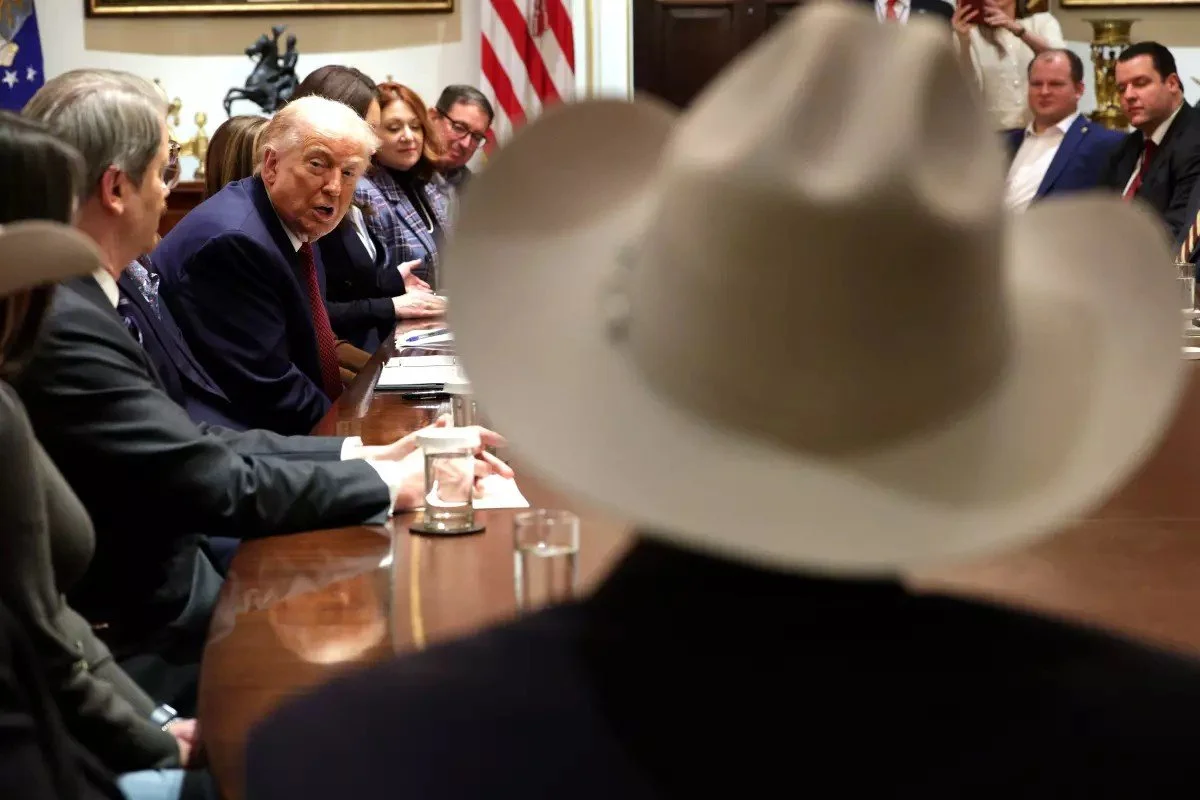 Trump speaks to outraged, alienated farmers at White House in December 2025 to discuss tariffs undercutting cattle producers in favour of consumers. Cattle farmers in states such as Texas and Arizona are one of the most faithful voters to the president
